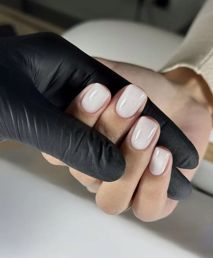 Unlike traditional manicures, this method focuses on precise dry cuticle work for a clean, polished look, followed by a flexible rubber base that strengthens the natural nail without added thickness and a professional gel color for a smooth, glossy finish that lasts for weeks.